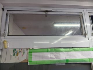 今回はお天気が良い日は教室に陽が入りすぎてしまい、静かな活動中にまぶしいため断熱フィルムを貼ってみました!